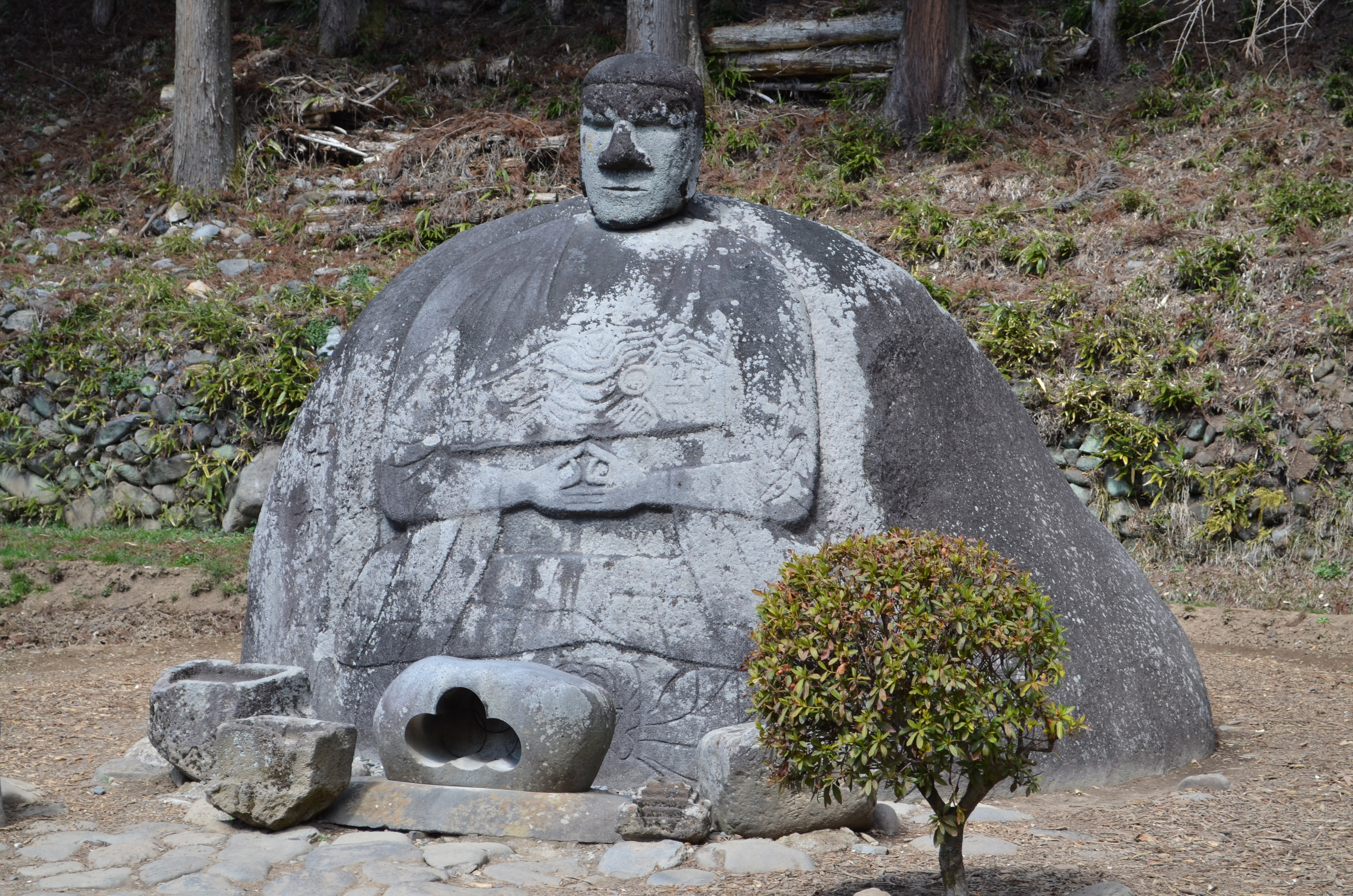 1974年、たまたま諏訪大社の御柱祭を見学に来られこの石仏と対面された画家の岡本太郎さんや作家の新田次郎さん方が感嘆されたことにより、一躍話題を呼び講演又は雑誌等で全国に紹介され知られることになりました。石仏の「万治」は、この石仏を建立した願主が万治3年(西暦1660年)と刻まれているところによるものです。