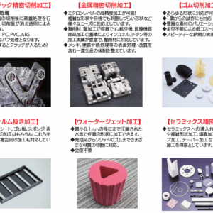 社内自社工場を核に、あらゆるニーズにお応えできる協力会社は約 300 社にのぼり、一貫受 注体制を含め、幅広い加工技術対応を構築しています。 / プラスチック・ゴム切削加工、成形加工、試作モデル加工、金属切削加工、セラミックス切削加工、フィルム・ゴ…